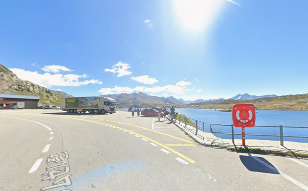 Googleマップのペグマンさんに本来の風景を見せてもらうと、こんなに素晴らしい景色が広がっています。ちょうどトラックあたりにバスが泊っているのです。