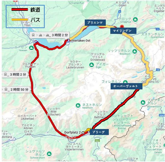 当初9月6日に行こうとインターラーケンオスト駅まで来て、マイリンゲン行の乗り換えで失敗し、行先を変えた因縁のコースです。今回もトラブル続き、ハラハラの行程でした。