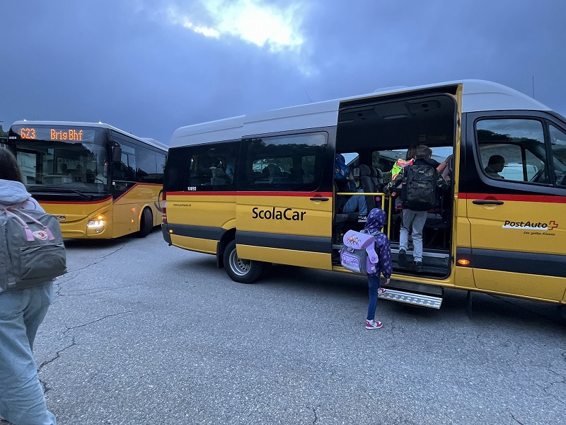 7:24 子供たちはスクールバスと一般のバス両方に分かれて乗ってます。行先が違うのでしょうか?