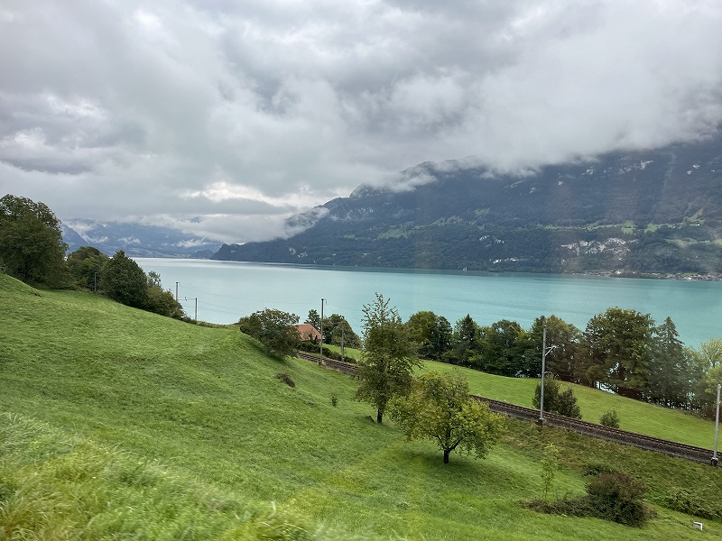 9:46 マイリンゲンまではブリエンツ湖を右手に見ながら列車と同じ方向で進んでいます。