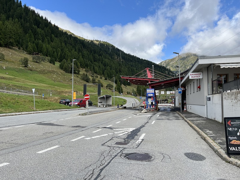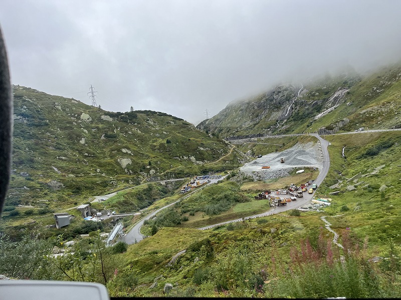 ここが峠の頂上で分水嶺になっています。バスはここで少し休憩します。本来なら谷の反対側にヴァリスアルプスの風景が美しく広がっているはずなのですが、写真の通り止まっているバスだけしか見れません。