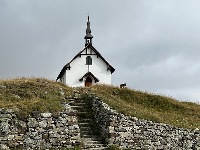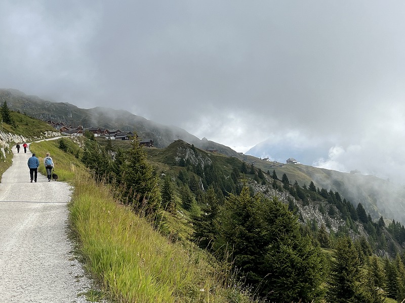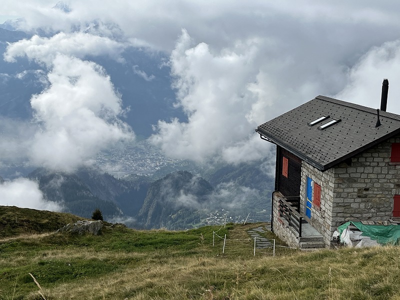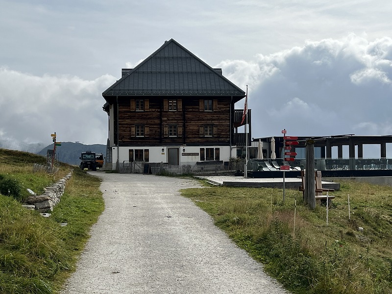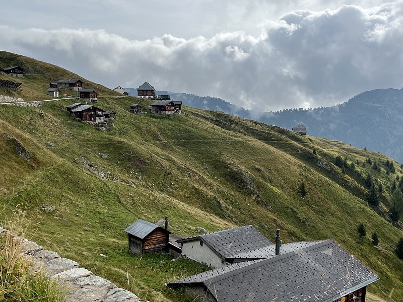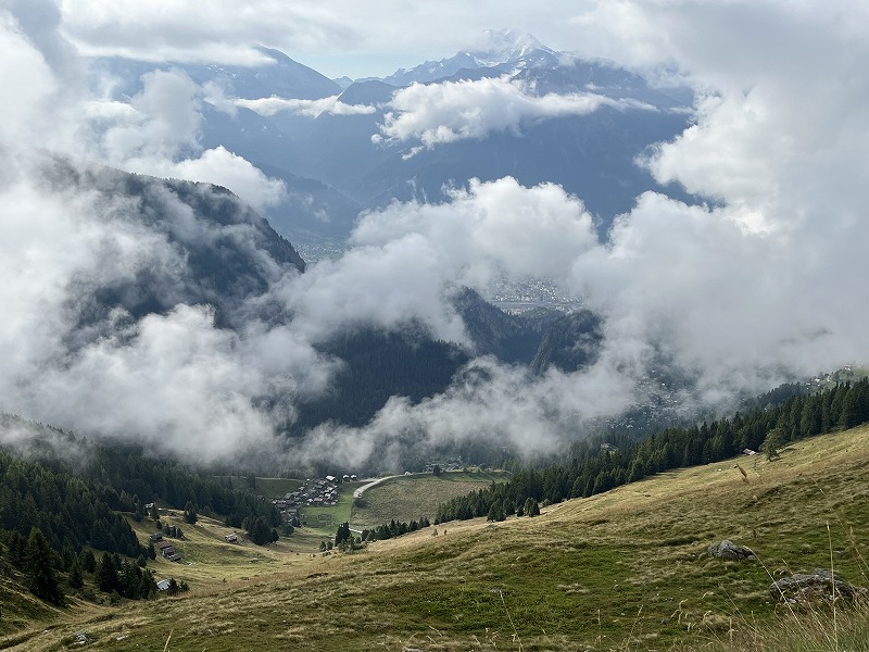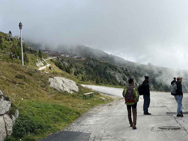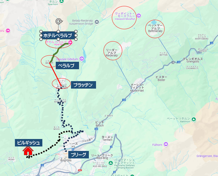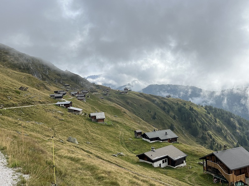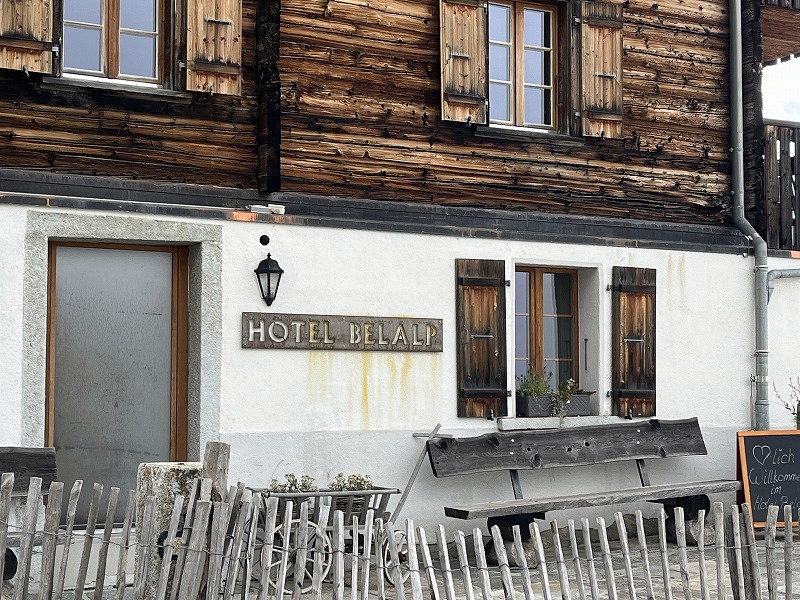 ベラルプからはホテルベラルプを目指して約40分、アップダウンがほとんどない絶景コースを歩いてアルプスの真っただ中に立つホテルからアレッチ氷河の下流末端から縦に延びる壮大な景観を眺めます。