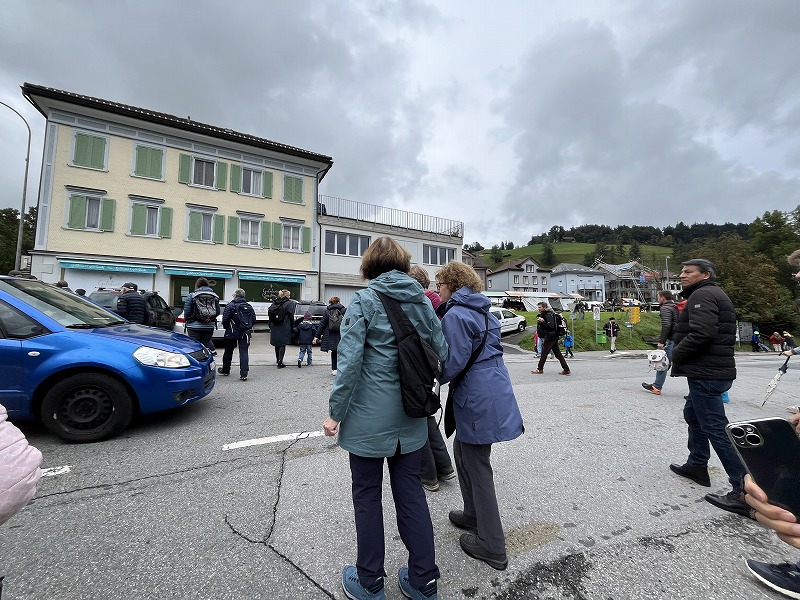 皆さん道路沿いで並んで待っていますが、なかなか牛さんたちが来る気配は感じられません。