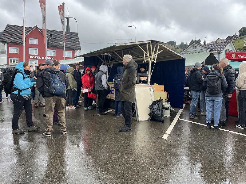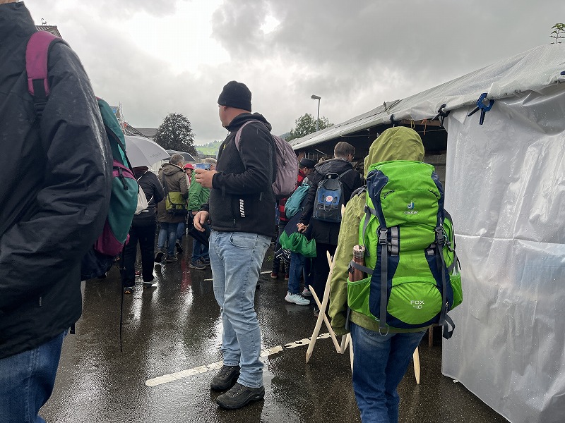 この後まだ後続の牧くだりがあるのでしょう、見物の皆さんは移動しようとしなかったのですが、私たちは雨も降るし近くで開催されているファーマーズマーケットを一巡してここを去ることにしました。