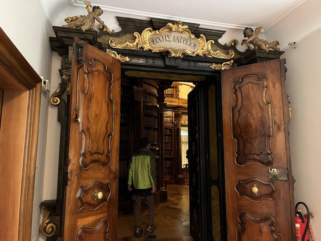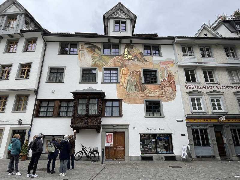 バロック建築の傑作といわれる大聖堂や教会、ロココ調の美しい広間が印象的な修道院付属図書館、世界最古の建築設計図や約17万冊を誇る貴重な蔵書が評価され、1983年に世界遺産に認定されたザンクトガレン、中世の面影が漂う旧市街も楽しみに出かけました。