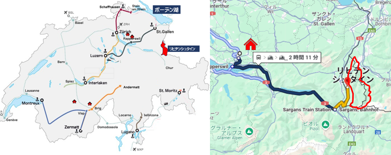 デュルンテンのアパートからハイジの里として有名なマイエンフェルト方面に向かって列車で進み、途中のザルガンスで下車します。サルガンスのすぐ東隣がリヒテンシュタイン公国です。