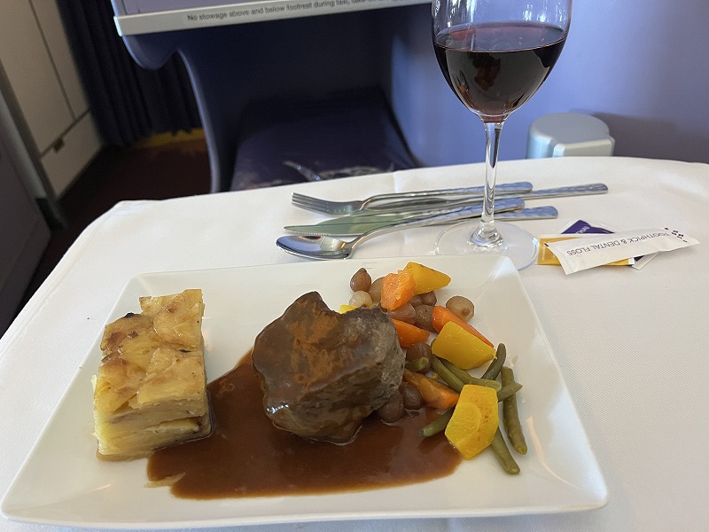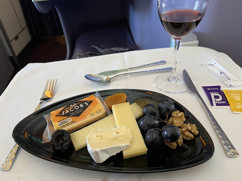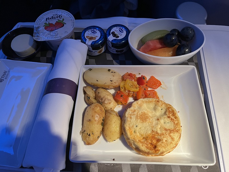 タイ航空の機内食、最高においしかったです。最後の朝食はアイスクリームとフルーツだけになりましたが、ほかはすべておいしくいただきました。
