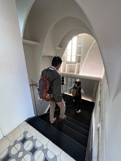 帰りはこんな暗い階段、隈研吾氏によりデザインされたそうです。