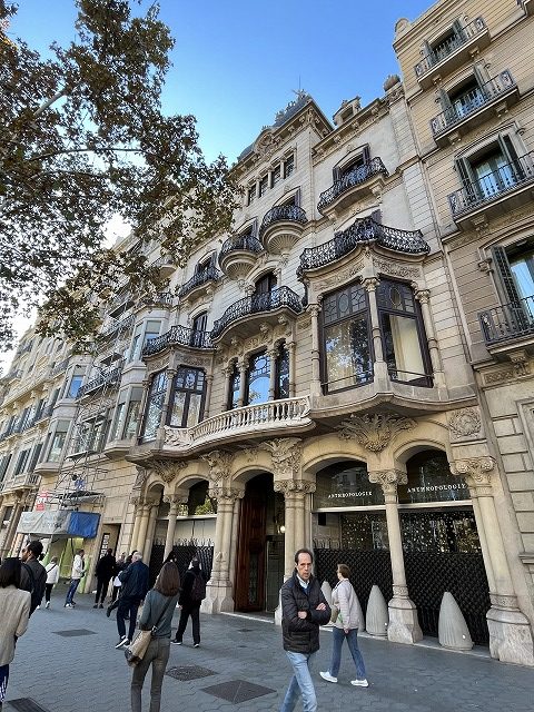 今日はその「カサ・バトリョ」(青の①)に行きます。カタルーニャ広場から750m、歩いて10分です。