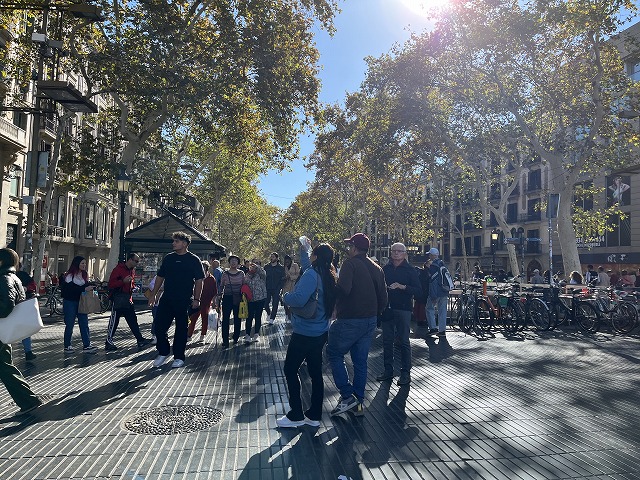 黒色の線、とにかくおしゃれな通りです。ブランドショップが入ってる建物がすべて独特の建築物、まるで野外美術館のようです。バルセロナのシャンゼリゼともいわれているとか。華やかな通りです。
