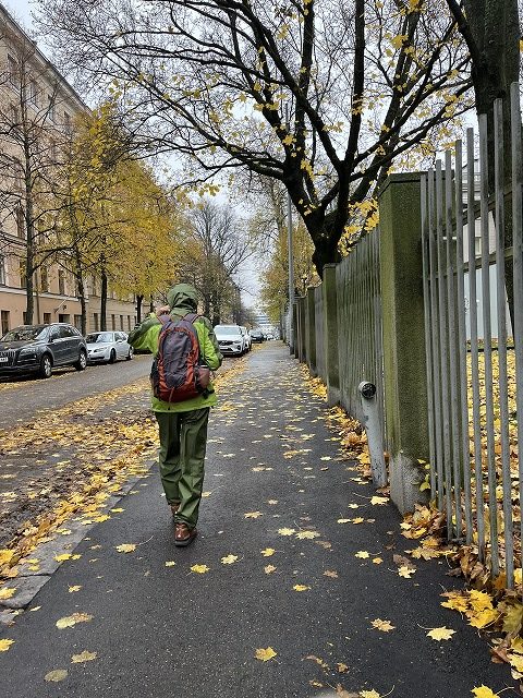 アパートメントから港へ通じる街並みです。到着した日、初めての地で宵闇の中にタクシーから降ろされ、不安の中でたどった道路です。濡れた落ち葉で靴もスーツケースも汚れてしまいました。