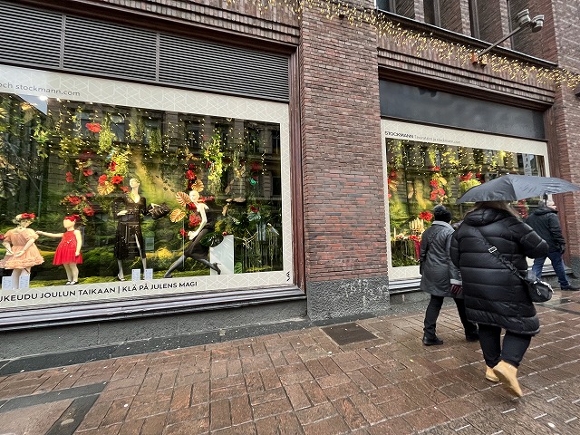 サンタクロースの国フィンランド。ショッピングウィンドウはクリスマスの装いがしてありました。