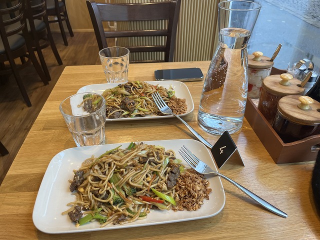 街歩きの途中でちょうど昼になったのでどこか、とキョロキョロしながらレストランを探していたところ、ウィンドウ越しに焼きそばを食べている人が目に留まりました。