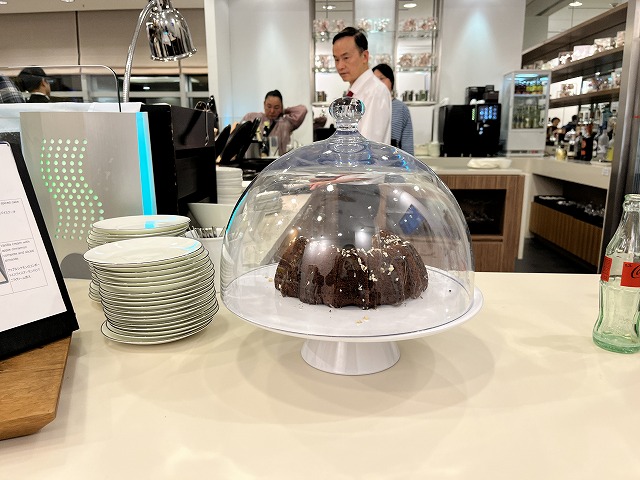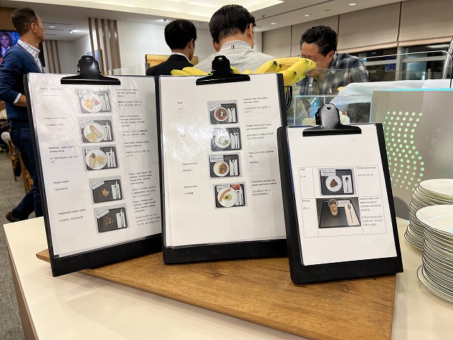 成田に比べるととても狭くて、食事や飲み物がどこにあるのか最初わかりませんでした。フード類は狭いカウンターで受付て、すべてオーダー式でした。自由に好きなものを選べるブッフェ式がいいですね。遠慮深い(?)ので頼みづらいです。並んで名物のカレーを頼みました。