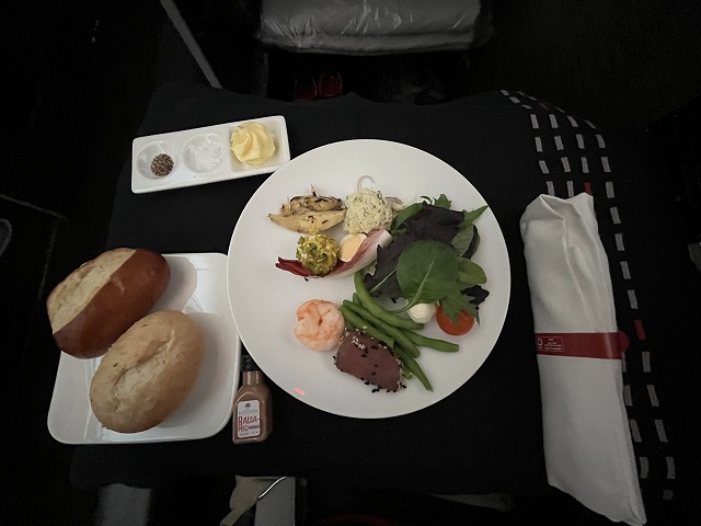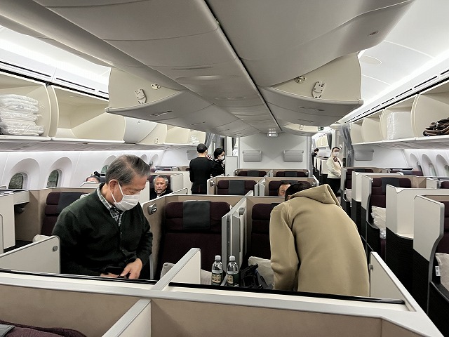 搭乗口で待機しているときに同じ飛行機で帰られる女性に出会い、いろいろと会話をしました。その方は一人旅の途中で、その間のトラブルは想像を絶するもので、それに比べると私たちがトラブルと思っているものはかすり傷くらいのものでしかないように思いました。よく帰国できるまでこぎつけられたものだと、今後の教訓のために耳を傾けていたら、空港アナウンスで呼び出しがあって、依頼していたビジネスシートの空席が出てビジネスに乗れるということでした。席も近くでした。