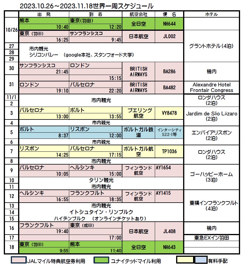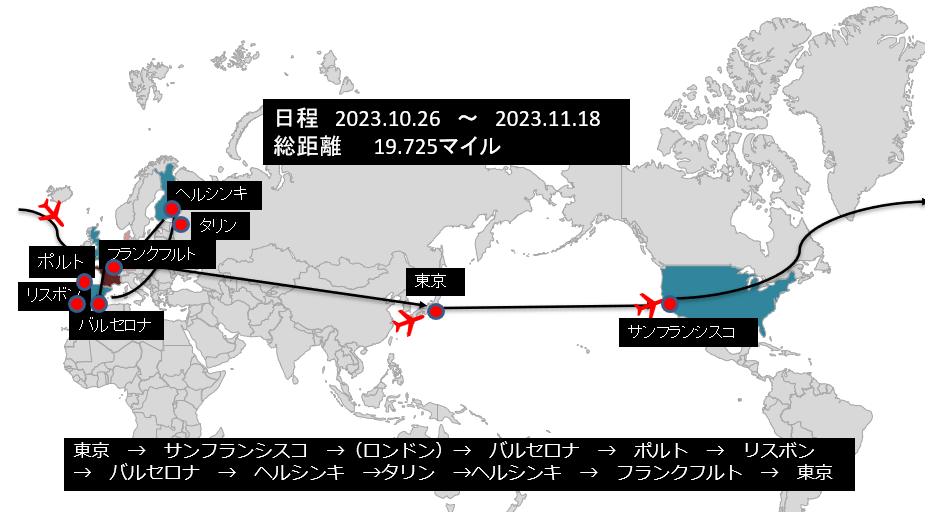 ユナイテッドマイル 20.000マイル(東京往復) - 訪問国数 :6か国 (アメリカ、スペイン、ポルトガル、フィンランド、エスパニア、ドイツ)