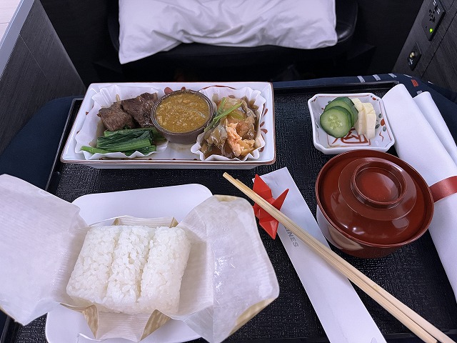 食いしん坊のばばちゃんは機内食にも大いに期待していました。