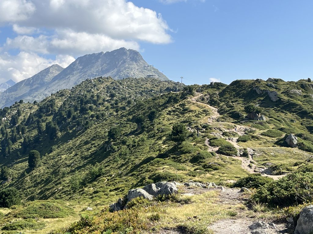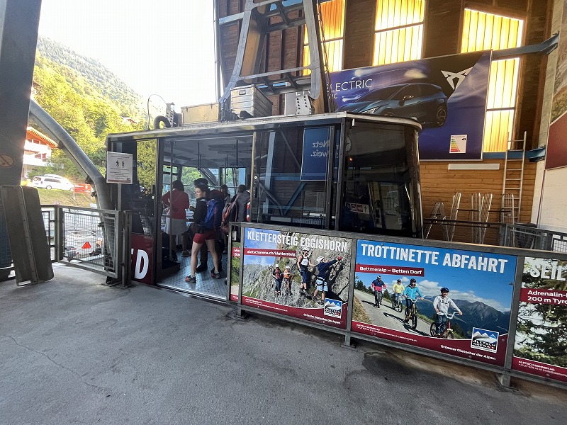 リーダーアルプ・ウェスト(West)からさらに上のモースフルー展望台行のロープウェー乗り場まで10分ほど歩きます。