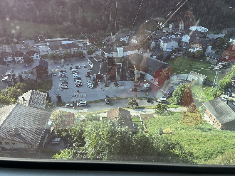 Leuk駅から東方面へ VISP、Brigを経由してリーダーアルプに上がるゴンドラ駅メレル(Mörel,765m)まで列車で向かいます。