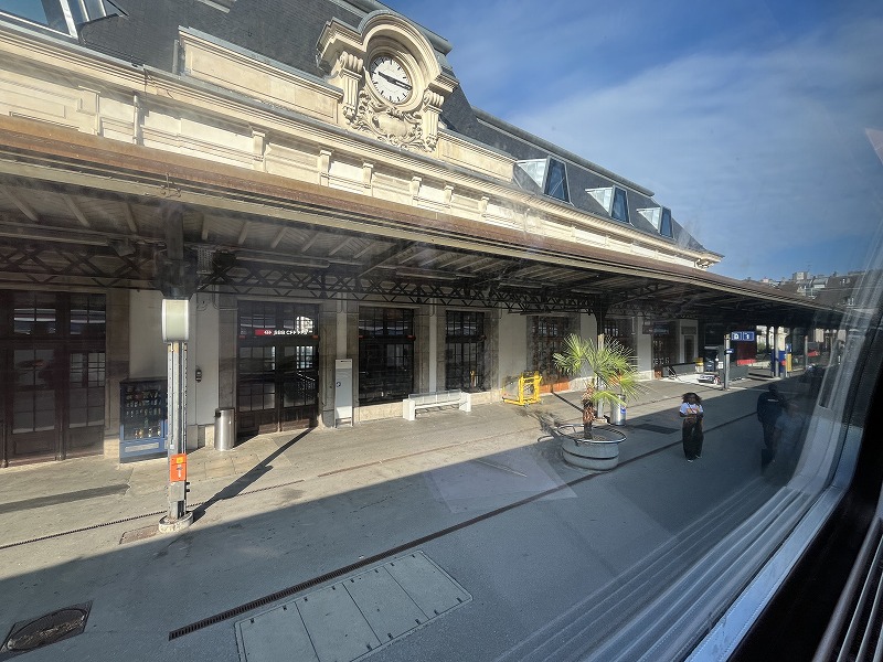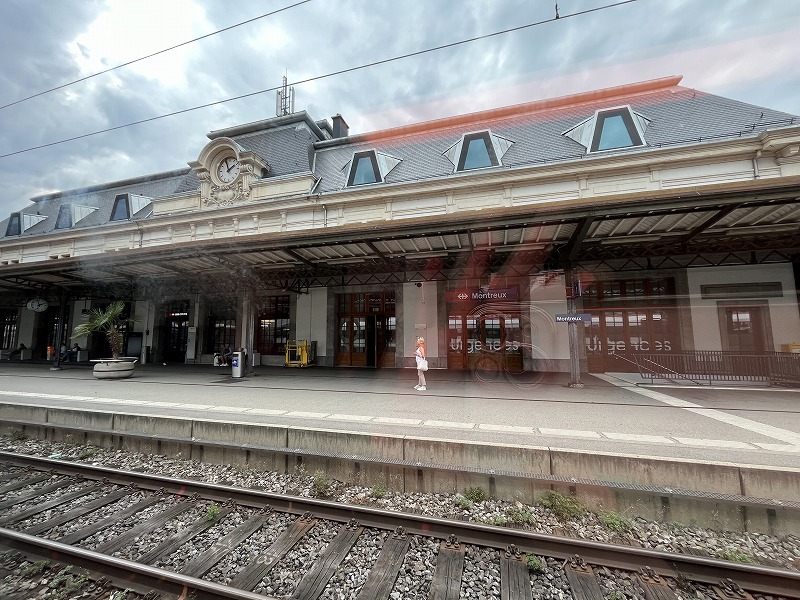 13:57 Vevey駅に戻り帰途につきました。車窓から撮ったモントルーの駅舎です。