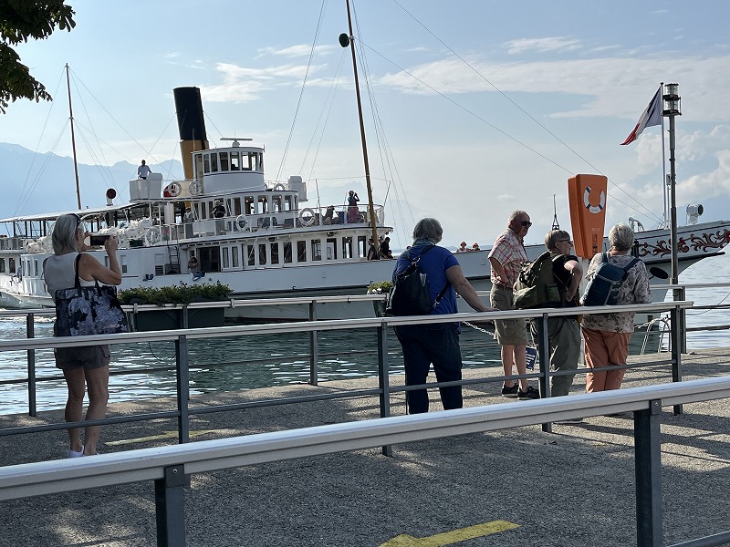 今日は鉄道の旅も西の方に向かいます。ローザンヌには行ったことがありますが、レマン湖の遊覧船には乗ったことがなかったので、蒸気船上から世界遺産ラヴォー地区の美しいぶどう畑を眺める計画を昨日の休養日に立てました。