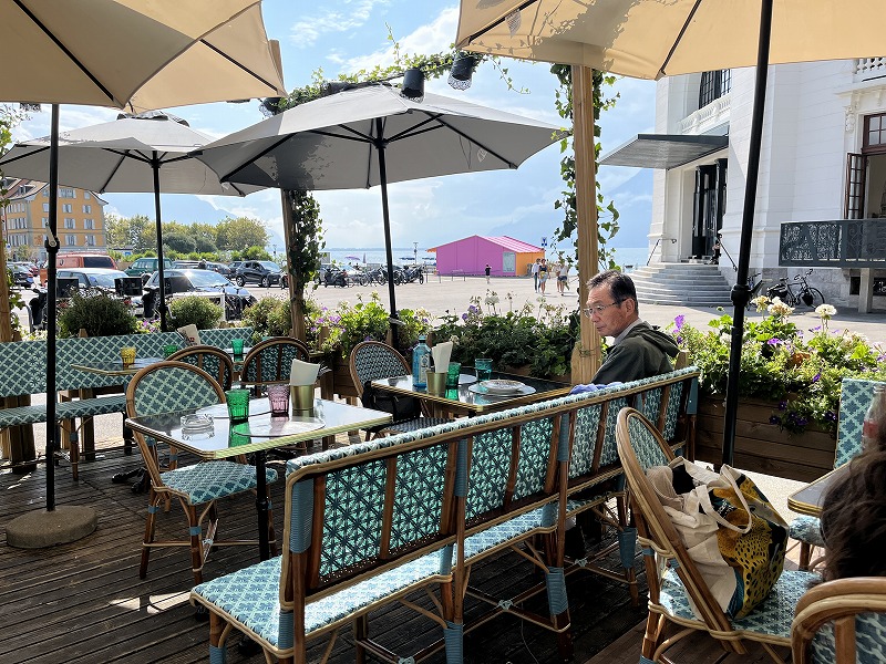12:08 レマン湖が見渡せるステキなレストランに入ることができました。