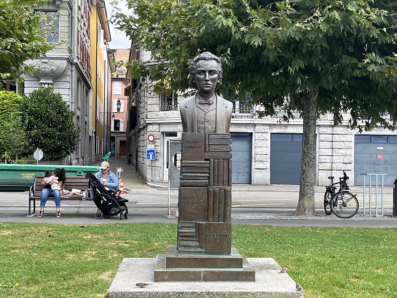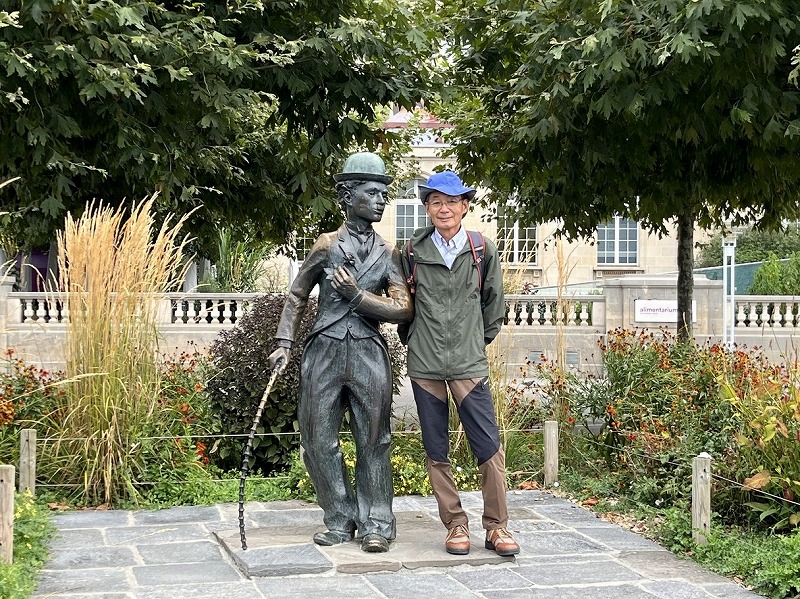 13:10 すぐ向かい側にチャップリンの銅像がありました。ヴヴェイ郊外に家を建て、晩年を過ごしたとして有名です。