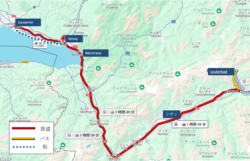 ホテル → ヴヴェイ (船) ローザンヌ → ヴヴェイ → ホテル という経路になりました。