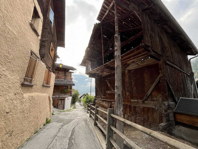 にらみ合ってる位置関係です。自然のままの山村の古い家屋や納屋が立ち並ぶ、ヴァレー州中部で最も自然のままの景観が残されている地域のひとつといわれています。楽しみに出かけました。