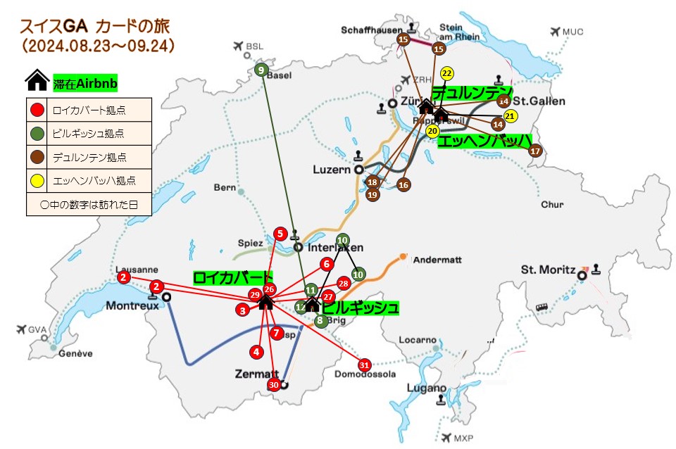 暮らすように旅するスイスの拠点は4か所でした(2024.8.23~2024.9.24)