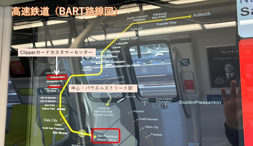 サンフランシスコ空港から市内まで、高速鉄道(BART)を利用すると片道10ドルかかります。