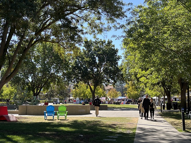 スタンフォード大学のVisitor Center(ビジターセンター)に行くと地図や観光情報がもらえるとのネット情報があったのでまずそちらにいきました。が、ここでもらった地図は手書きのとても分かりにくいもので、前の道路をまっすぐ行きなさいのアドバイスだけ、観光情報も全くもらえず、トイレだけ借りてそこを去りました。学生の案内ツアーもあるということだったのでその時間に合わせて行きましたが、気配もありませんでした。その後は広いキャンパスの中で迷ってしまい右往左往、目当てのメインクワットに着くまで相当の時間を費やしました。キャンパスの中をジョギングする人、犬と散歩をしている人、たくさんの人に出会い、メインクワットの方向を聞いたりしましたが、誰も正確な回答をしてくれませんでした。ということは目的地とは逆方向にどんどん歩いて、キャンバスの外に出ていたのかもしれなかったのです。あとで調べたら私たちがもらった地図ではないもっとわかりやすい地図をもらえるはずでした。Visitor Centerのサービス、最低だったなあ。金曜日だったから?