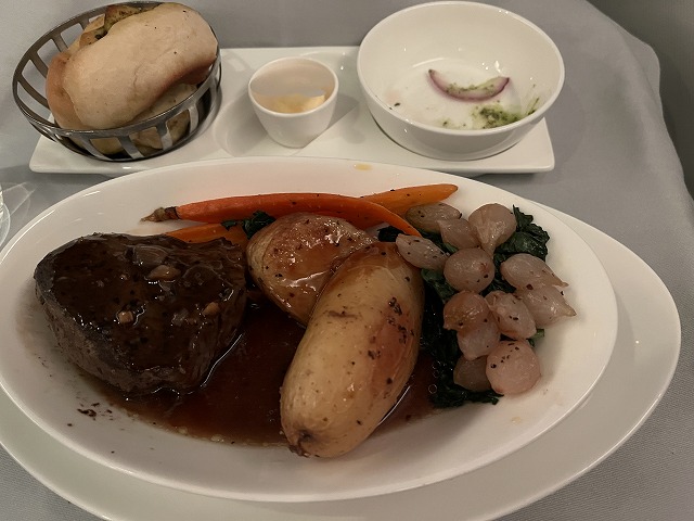 23:40 厚いbeefsteakが来たけど時間が時間 半分も食べられない。SDGsが頭をよぎった。