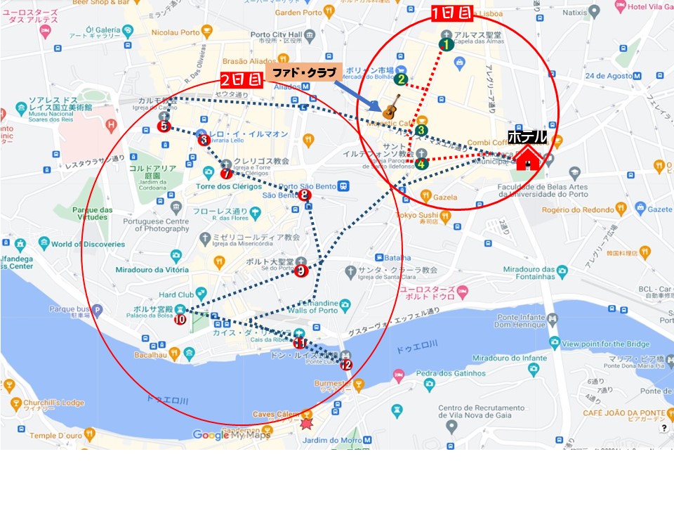 2日目は宿から歩いて⑤から⑫まで行き、そこからまた宿まで歩いて帰りました。