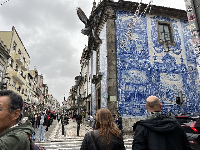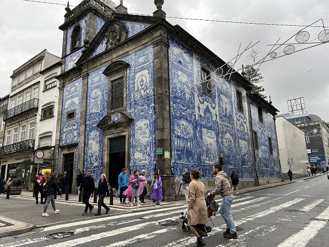 メトロ「ボリャオン駅/Bolhão」で降りて階段を上がると目の前がアルマス大聖堂。いきなりポルトガルの装飾タイル・アズレージョのお出迎えでした。壁面全体が見事なアズレージョで覆われています。