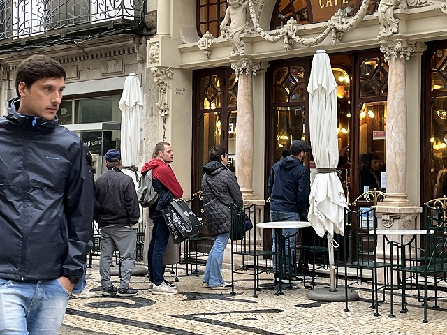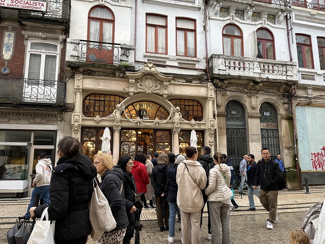 「カフェ・マジェスティック」は、1921年創業のポルト屈指の名物老舗カフェ。アールヌーヴォー様式の空間で優雅にお茶や食事を楽しめるとあって、豪華な内装と上質な雰囲気を味わいながら、ちょっとだけ特別なひとときを味わってみたいな、と楽しみにしていましたが、なんと考えが甘い!!そんな簡単にうまくいくはずがありません。店の前は長蛇の列、とても1時間や2時間待ちでは入れる気配もありませんでした。