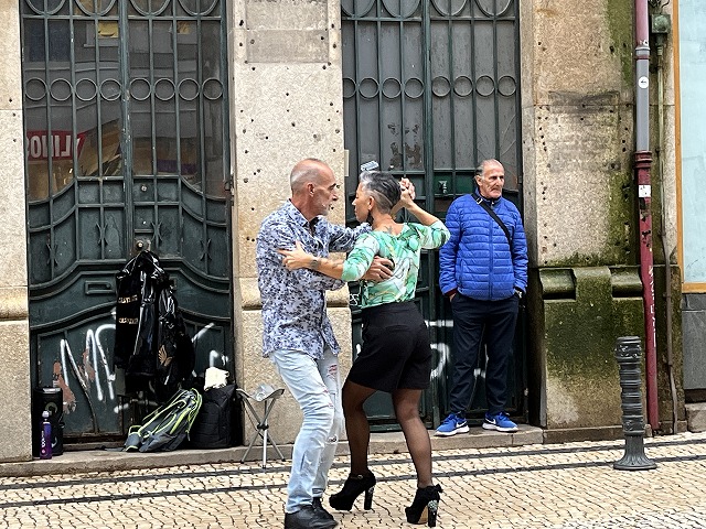 店の前でダンスを踊り始めたカップル。ヨーロッパでは人が集まるところでいろいろなパフォーマンスをしている人達を多く見かけました。