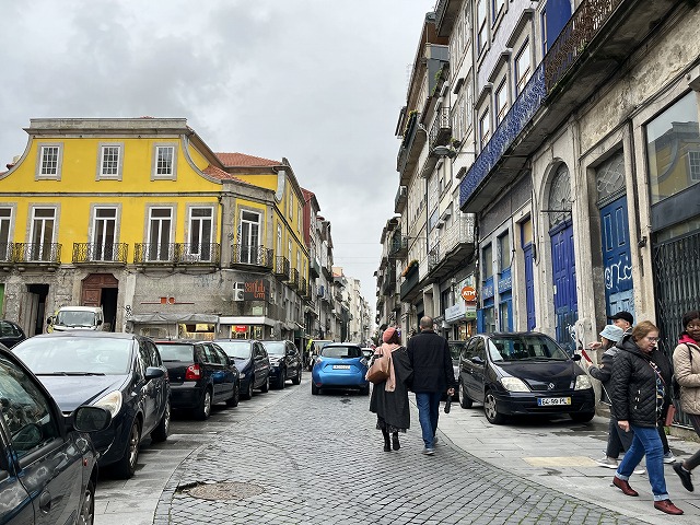 「サント・イルデフォンソ教会」をグルーっと回った路地を直進すると宿泊先のコンドミニアムまでもうすぐです。この路地の車の駐車がすごい。歩道は歩けなくて車道を歩いていきました。